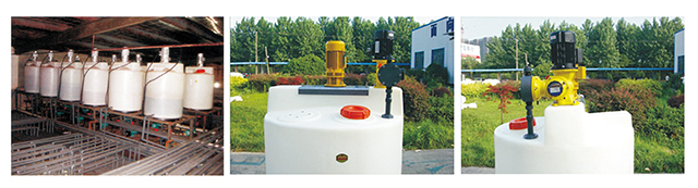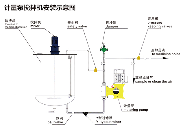 攪拌桶可與任何加藥泵、計量泵配套使用,方便又耐用,可廣泛配套使用在各類水處理工程,效果極佳。對于選用J系列機(jī)械隔膜式計量泵,一般情況在計量泵出口處必須選擇安裝安全閥防止過壓對計量泵隔膜的損壞。