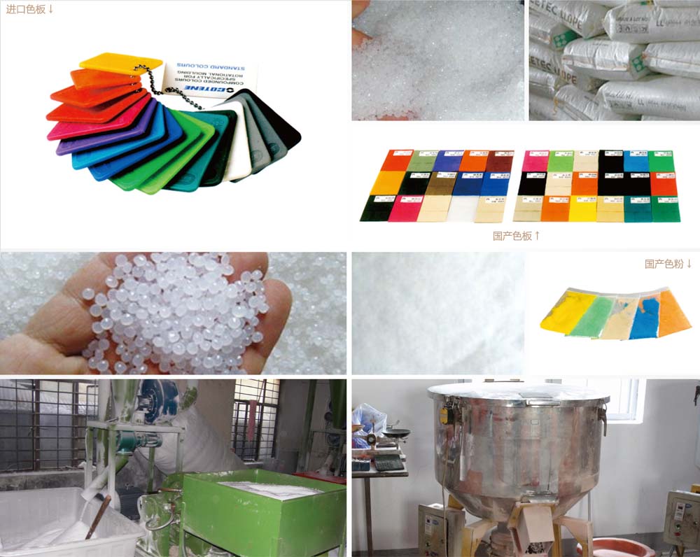 滾塑所采用的原料一般均為進口,我們采用樂天、美孚為主。除常用的顏色自己配色外,其余最好采用專門色料供應(yīng)商的原料,如馬來西亞 ICO及南京聚隆等,能調(diào)配耐強紫外線、抗強氧化性、甚至阻燃等專用料。